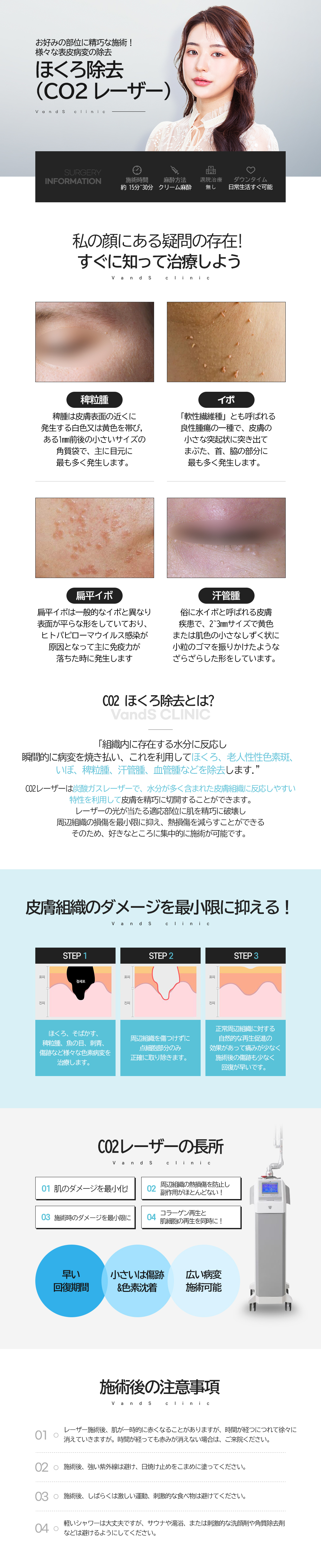 皮膚のダメージを減らしたホクロ、稗粒腫、小さいイボ、イボ、汗管腫の除去